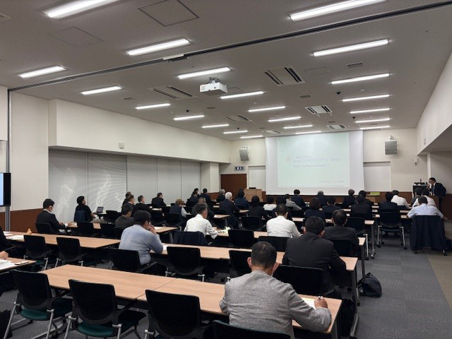 テーマは「共同購入」。一般社団法人日本ホスピタルアライアンス 事業推進部長の平田房彦氏による講演では、共同購入の仕組みや今後の展望について説明がありました。続いて、県内のふじおか病院とひらまつ病院から導入事例の発表が行われ、実践に基づく取り組みが紹介されました。